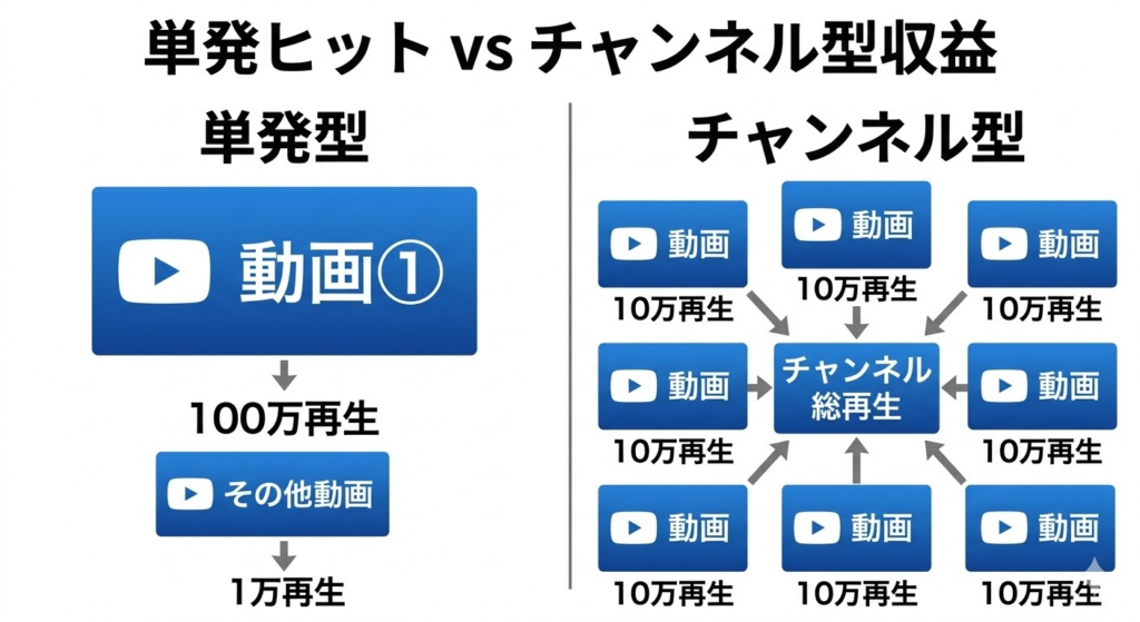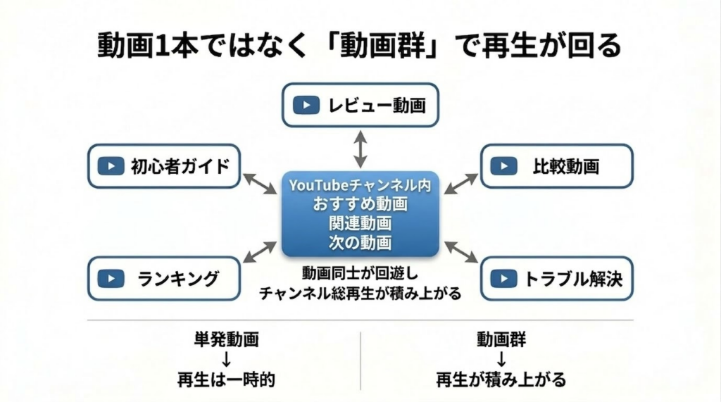 • 動画一本ではなく「動画群」で稼ぐチャンネル設計