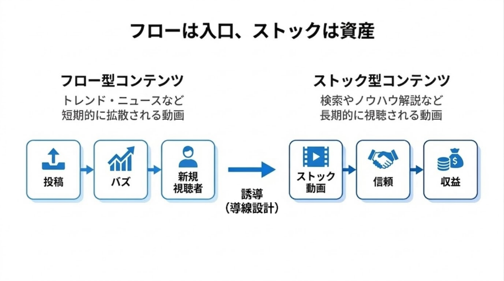 • 需要に合った企画を練り、フロー型・ストック型を駆使して集客と資産化を両立させる。(単発の流行と積み上がる資産のバランス)