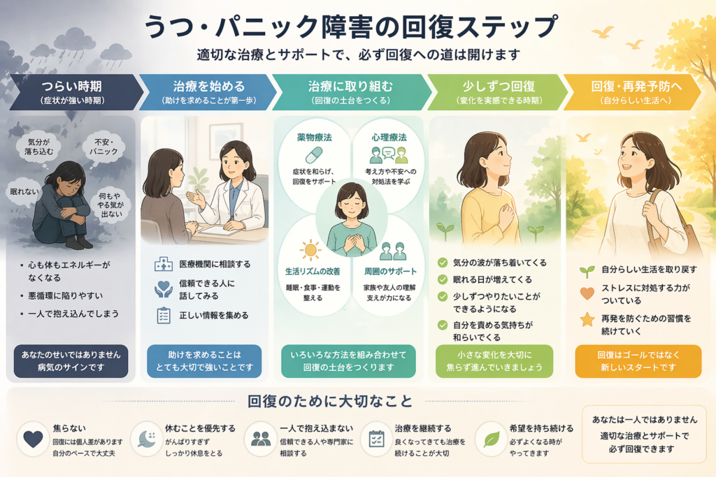 うつ病・パニック障害からの回復の道のりを、科学的知見と当事者の視点の両面から概観してきました。最後に、本記事の要点を振り返りつつ、読者であるあなたに伝えたいメッセージをまとめます。