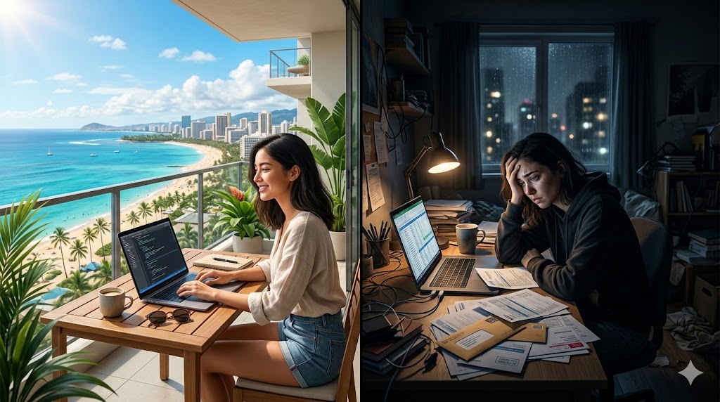 海外移住は本当に自由になれるのか?「月5万円生活」の幻想、キャリアの不安定さ、孤独、ビザ・医療・年金など制度リスクを整理し、20代が後悔しないための判断軸と準備ステップを解説する。